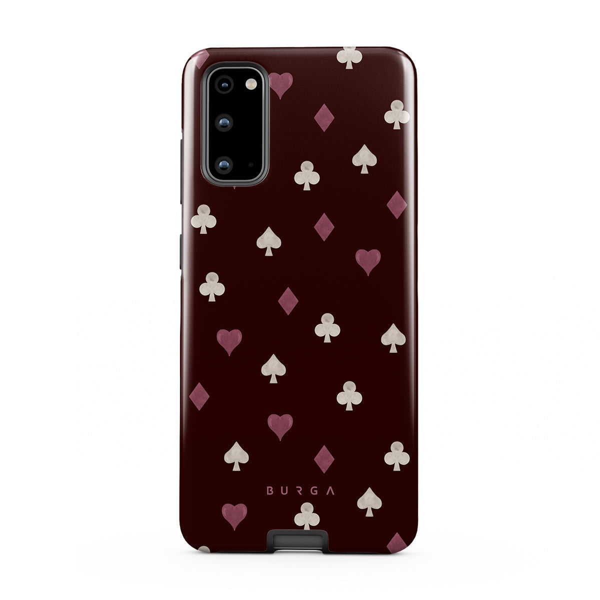 Nothing is as it appears. Hearts, clubs, diamonds, and spades—stacked in your favor or playing against you? This Samsung Galaxy S20 FE 4G / 5G phone case design features a rich burgundy background and minimalist suits that make for a game where the rules are constantly shifting.