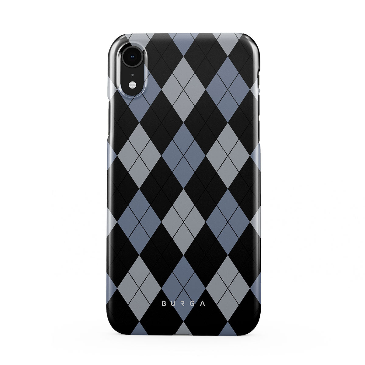Discover our Trouble iPhone XR phone case design—a classic argyle pattern featuring stark black diamonds that seamlessly blend with two distinct shades of blue. Made for those who respect the classics but aren't afraid to disrupt the norm.