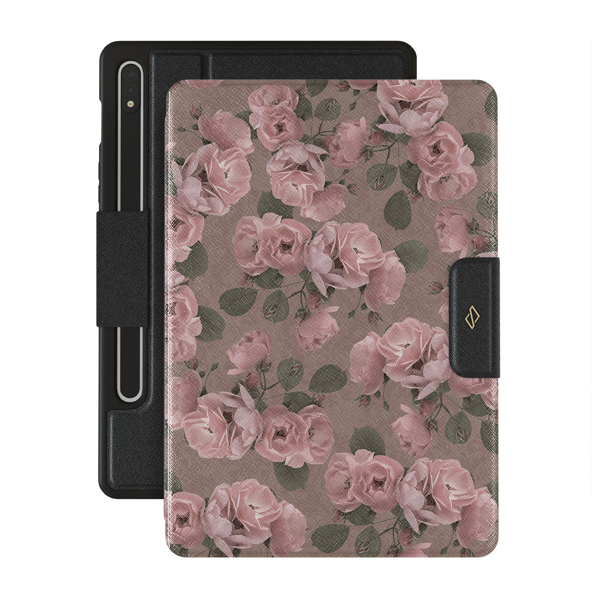 Blush, blooming roses transport you to an era of silent film stars and secret gardens. Our sophisticated Vintage Glamour Samsung Galaxy Tab S9+ folio casedesign is perfect for the romantic at heart. It's for those who speak in glances and sighs and find comfort in the nostalgic whispers of floral romance.
