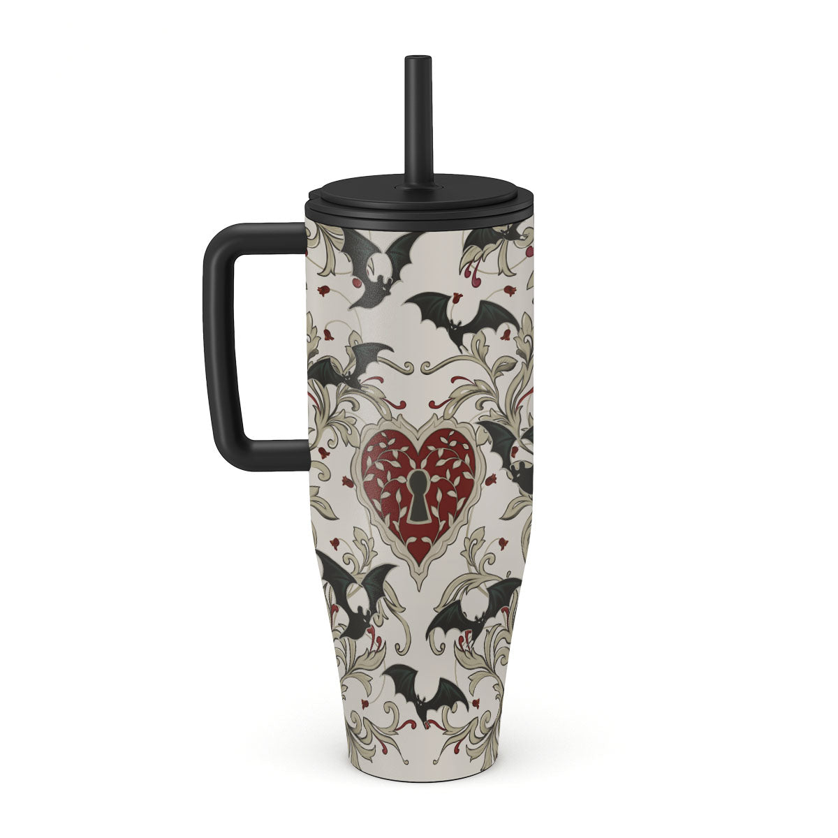 This design features: heart, lock, bats, gothic motifs
