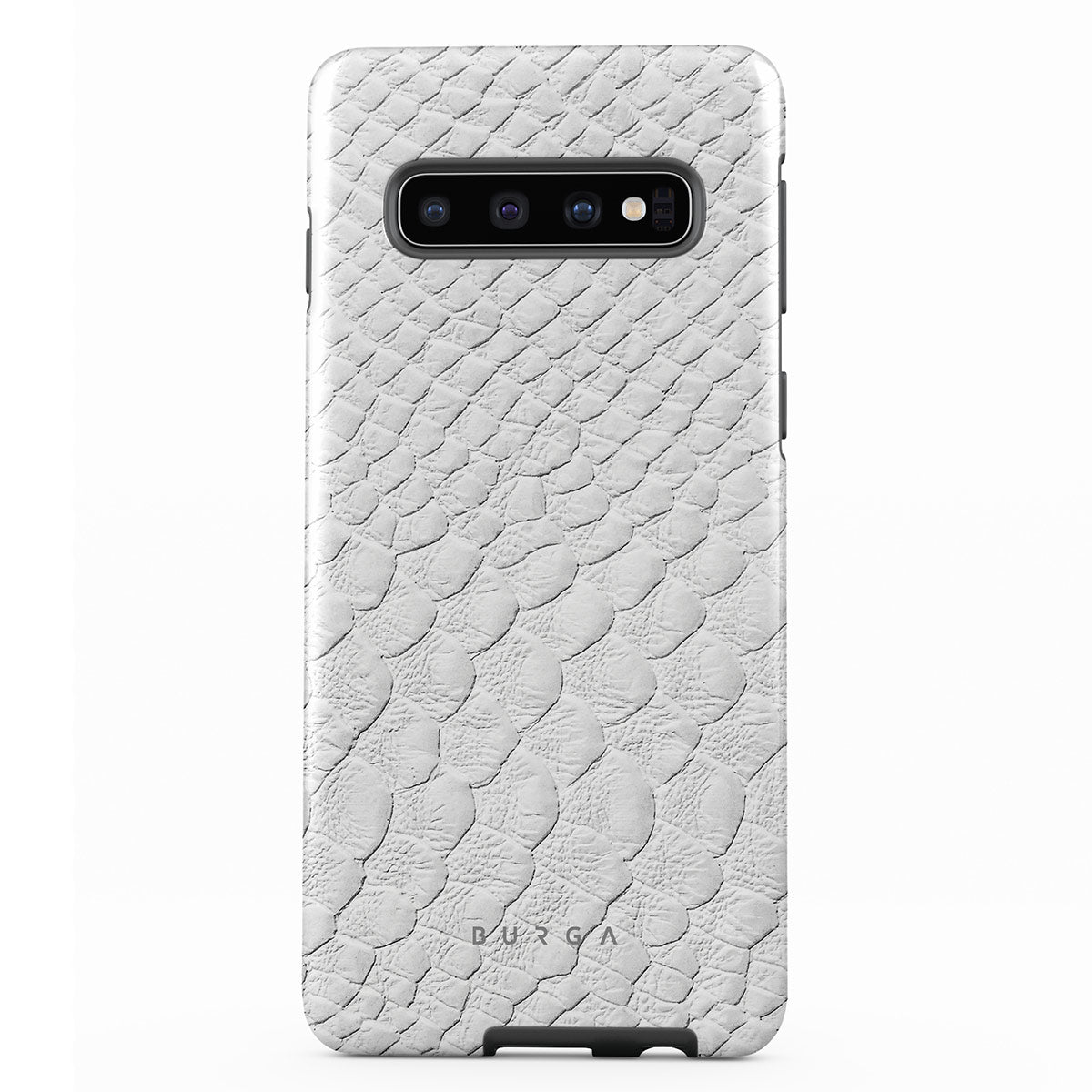 Glacial Desert Samsung Galaxy S10 Plus phone case features snakeskin design in glacial white color. The dangerous animal print will add confidence and a touch of luxury to your style while transforming your phone into a fashion accessory.