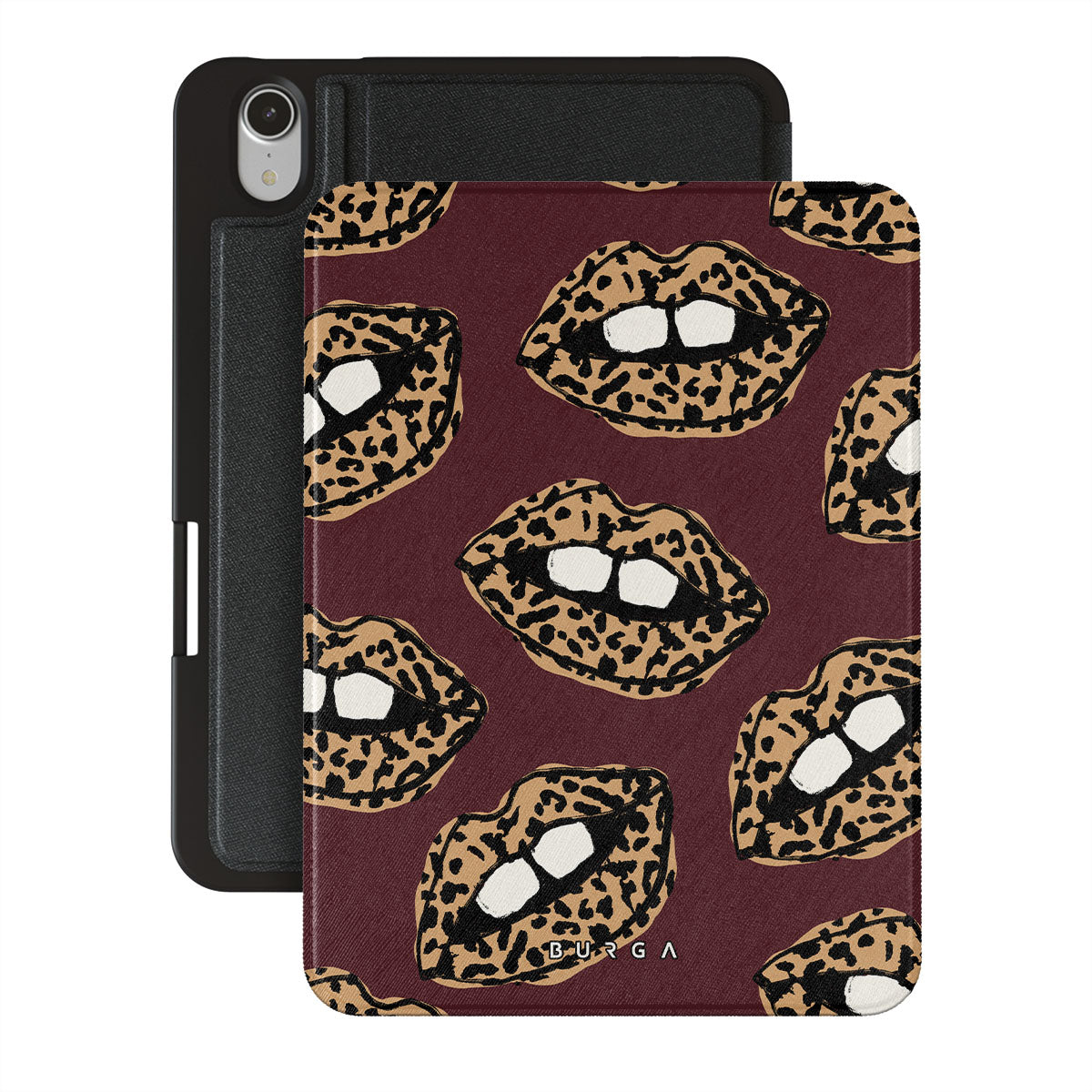 This design features: leopard print, lips, open lips, colored lips