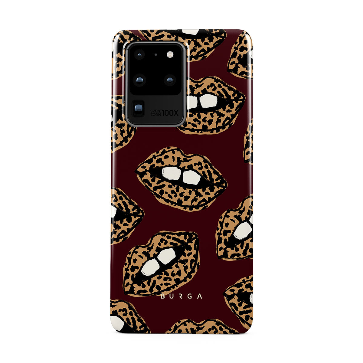 This design features: leopard print, lips, open lips, colored lips
