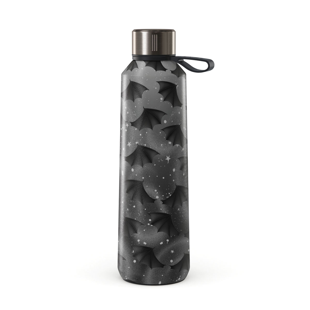 This design features: bat wings, stars, mystical swirls, black sky