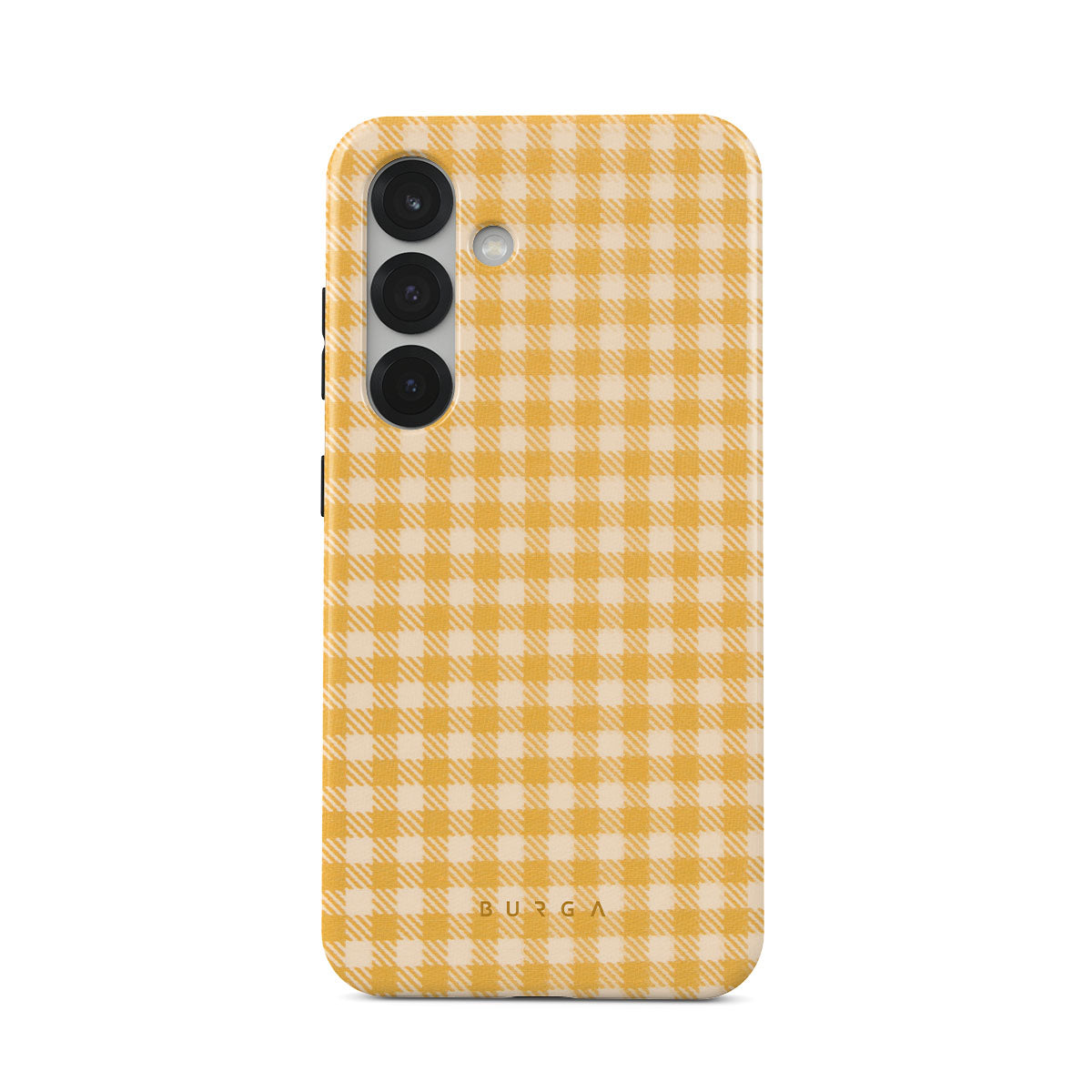 Always fashionable and always inviting, the Preppy Vichy fabric returns in our Tuscan Sun Samsung Galaxy S25 Plus phone case. The brightness and warmth of this enchanting yellow plaid design indeed remind us of the always generous Tuscan Sun. You can add a piece of this playful squares pattern with you while keeping your phone out of harm's way!