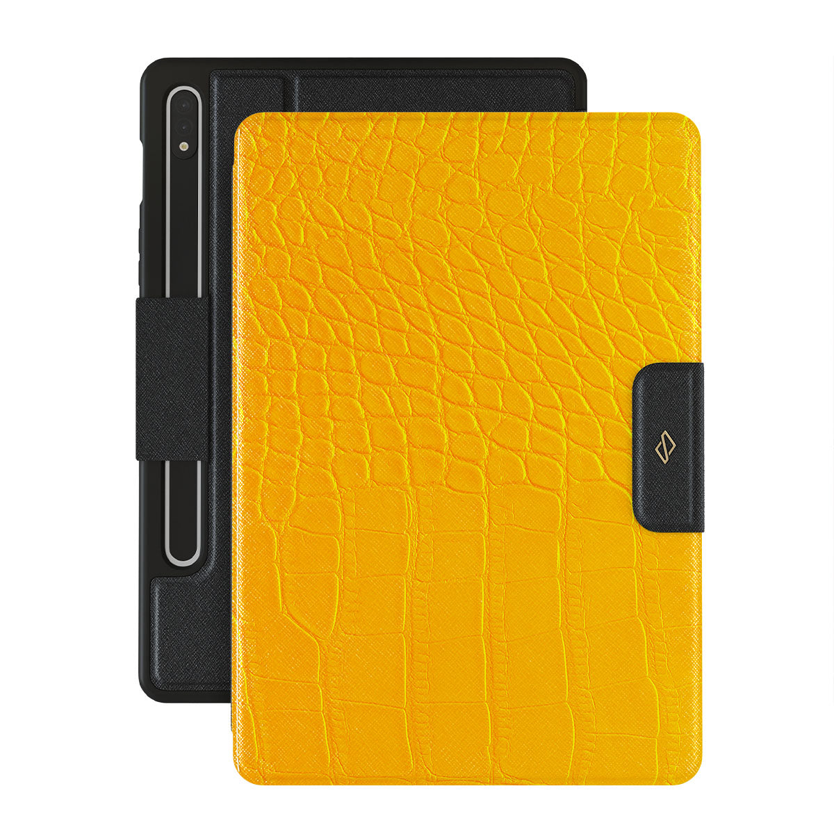 Our Canary Yellow Samsung Galaxy Tab S10+ folio case features a classic snake design reimagined and showcased in bright yellow. The new take on the dangerous animal print will add confidence and a touch of color to your style while transforming your protective Galaxy Tab case cover into a fashion accessory.
