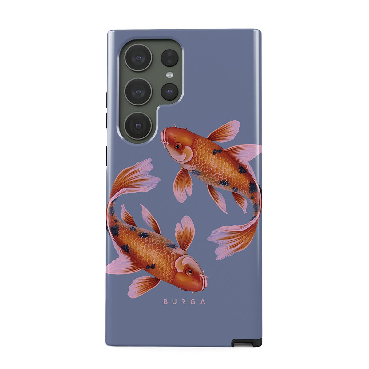 In the embrace of serene blue, the golden koi swirl, a symbol of life's fluid nature and the grace of going with the flow. Their dance is a serene meditation on the currents of destiny and the elegance of adapting with purpose. Discover our Zen Samsung Galaxy S23 Ultra phone case design.
